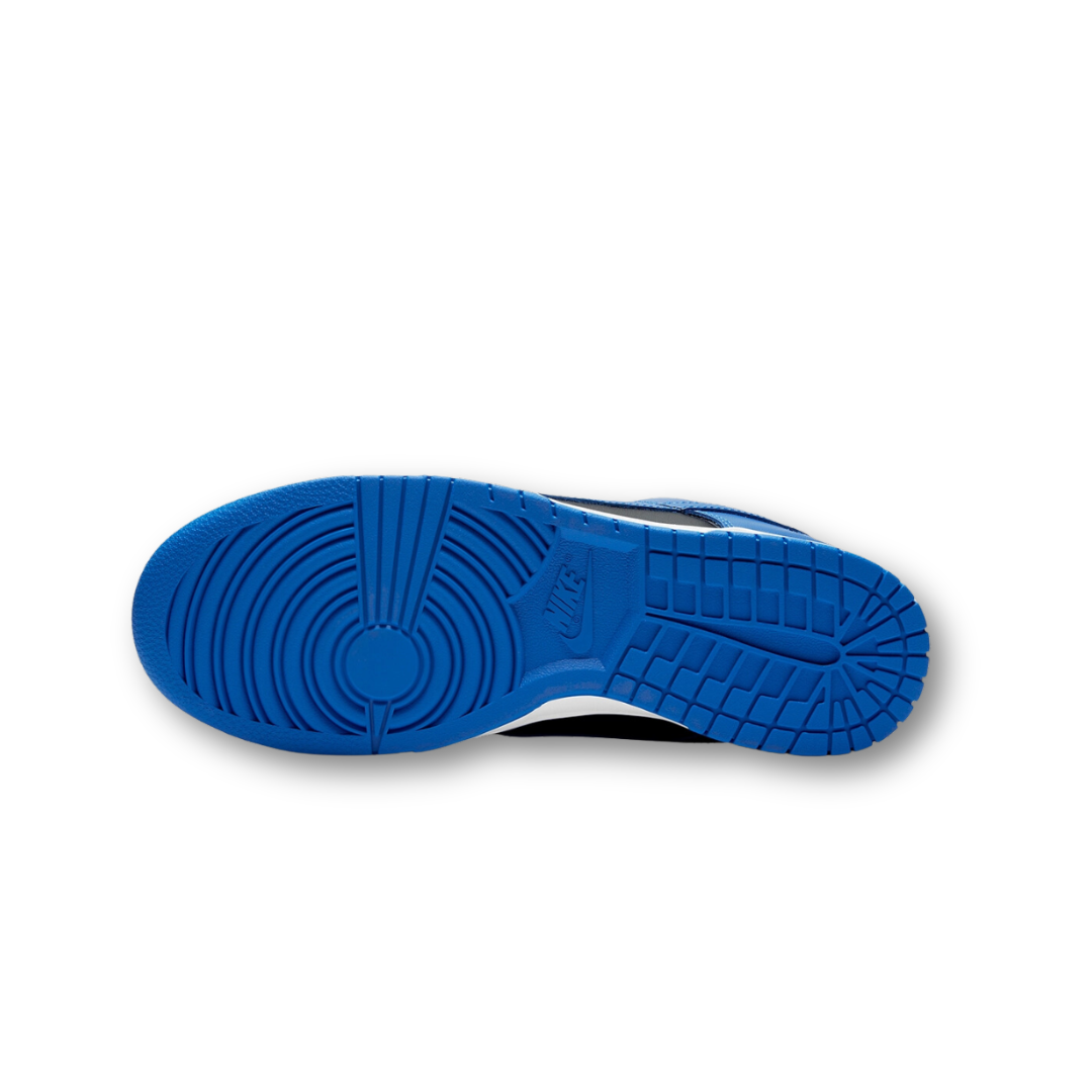 The Nike Dunk Low Retro Black Hyper Cobalt (2021) delivers a bold and sporty aesthetic with a vibrant mix of color and heritage design. This release features a black leather base with striking Hyper Cobalt overlays and Swoosh branding, offering a sharp contrast that stands out on foot. A white midsole and Hyper Cobalt rubber outsole round out the look, staying true to the classic Dunk DNA. With its college-inspired color blocking and durable construction, this pair is perfect for both longtime Dunk fans and new collectors.