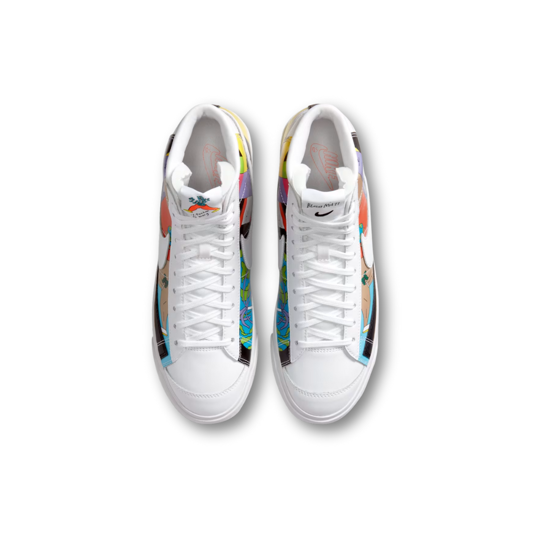 The Nike Blazer Mid '77 Flyleather Ruohan Wang is a bold, artistic take on the classic Blazer silhouette. Created in collaboration with Berlin-based artist Ruohan Wang, the sneaker features vibrant, hand-drawn graphics that reflect themes of sustainability, multiculturalism, and the connection between humans and the earth. Crafted from Nike’s eco-conscious Flyleather material, this unique release combines expressive visuals with vintage basketball style for a standout look that’s both thoughtful and timeless.