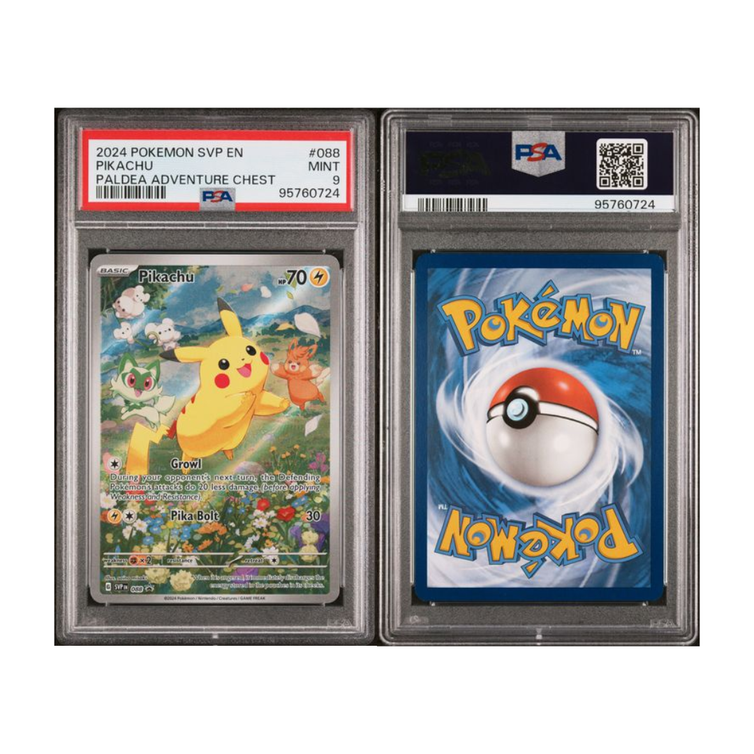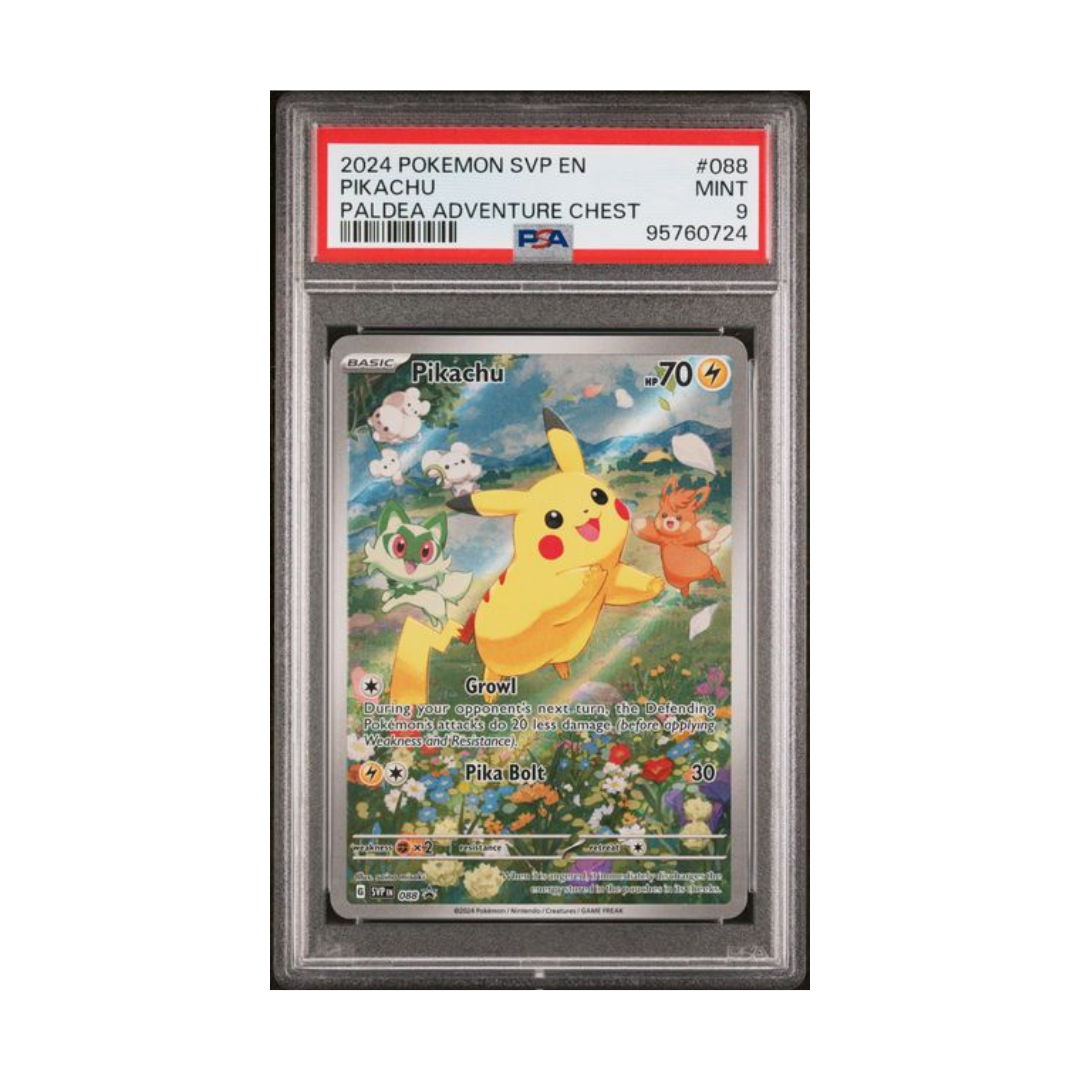 The Pokemon 2024 SVP Black Star Promo #088 Pikachu from the Paldea Adventure Chest is a collectible must-have for trainers and card collectors. Featuring Pikachu in a special promotional artwork, this card adds charm and exclusivity to any collection. Ideal for display, grading, or completing your Black Star Promo lineup, this official release offers a fun and meaningful addition for Pokémon fans.