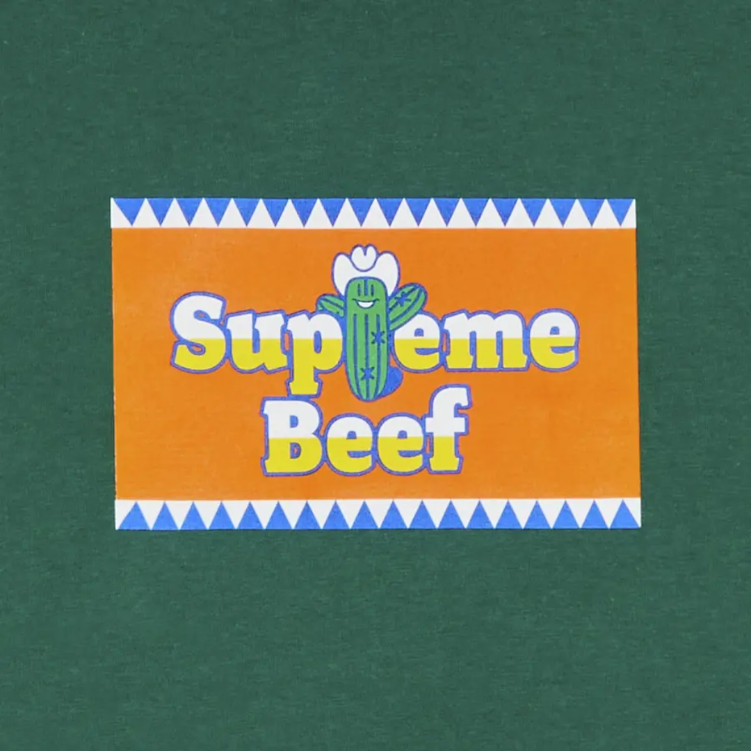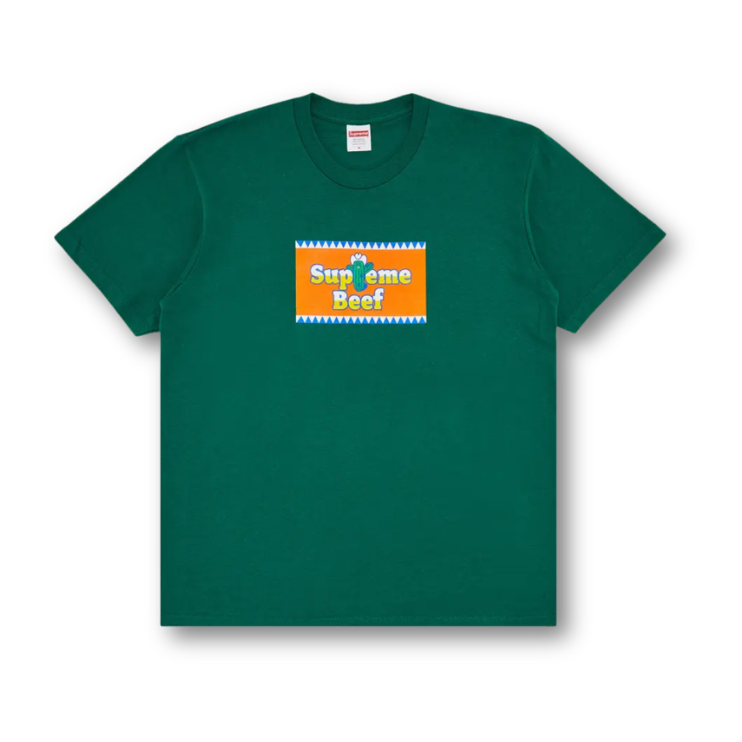 The Supreme Beef Tee in Light Pine is a standout piece from Supreme’s SS25 collection, combining casual streetwear style with bold graphic appeal. Crafted from premium cotton, this tee ensures comfort and durability while showcasing the brand’s signature aesthetic. Its versatile fit and unique colorway make it ideal for everyday wear or as a collectible streetwear item.
