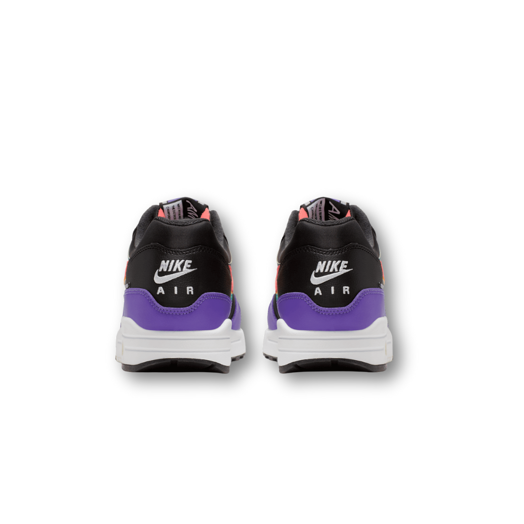 Part of Nike’s retro Windbreaker Pack, this release pays homage to colorful ’90s windbreaker jackets. The upper blends black with vibrant hits of Flash Crimson, Kinetic Green, Psychic Purple, University Gold, and White on stacked Swooshes and layered overlays. Features include vintage rope laces, a rotated “Sportswear” tongue label, and multicolored accents that signal old-school streetwear vibes. Underfoot, the classic Air Max 1 cushioning and waffle outsole keep the look functional and nostalgic.
